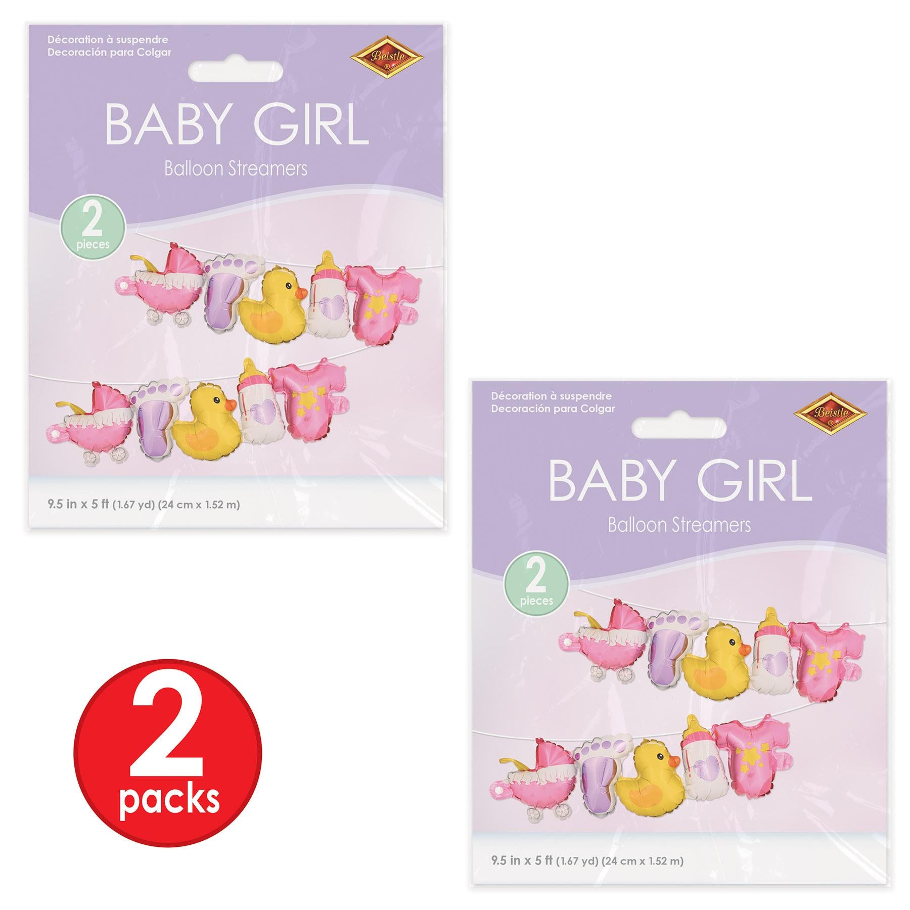 Product Description: This Baby Girl Balloon Streamers set is perfect for decorating your baby shower. Each package contains two 9.5" x 5' streamers in pink and white. Assembly is required, with instructions included. This item is part of our Baby Shower Theme Party Supplies collection, which also includes banners and balloon streamers. With 6 packages per case, you'll have plenty of streamers to decorate your special event. Our Baby Girl Balloon Streamers will add a special touch to your baby shower.