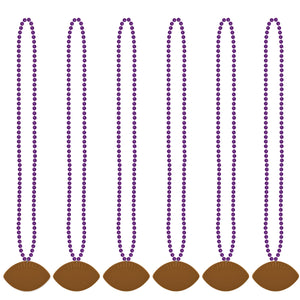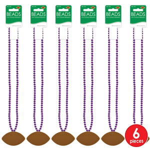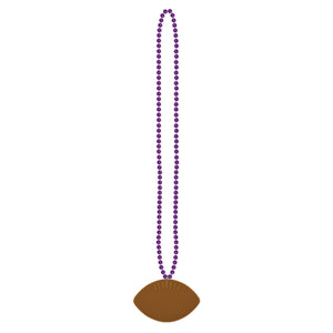 Purple Party Bead Necklaces with Football Medallion (12/Case)