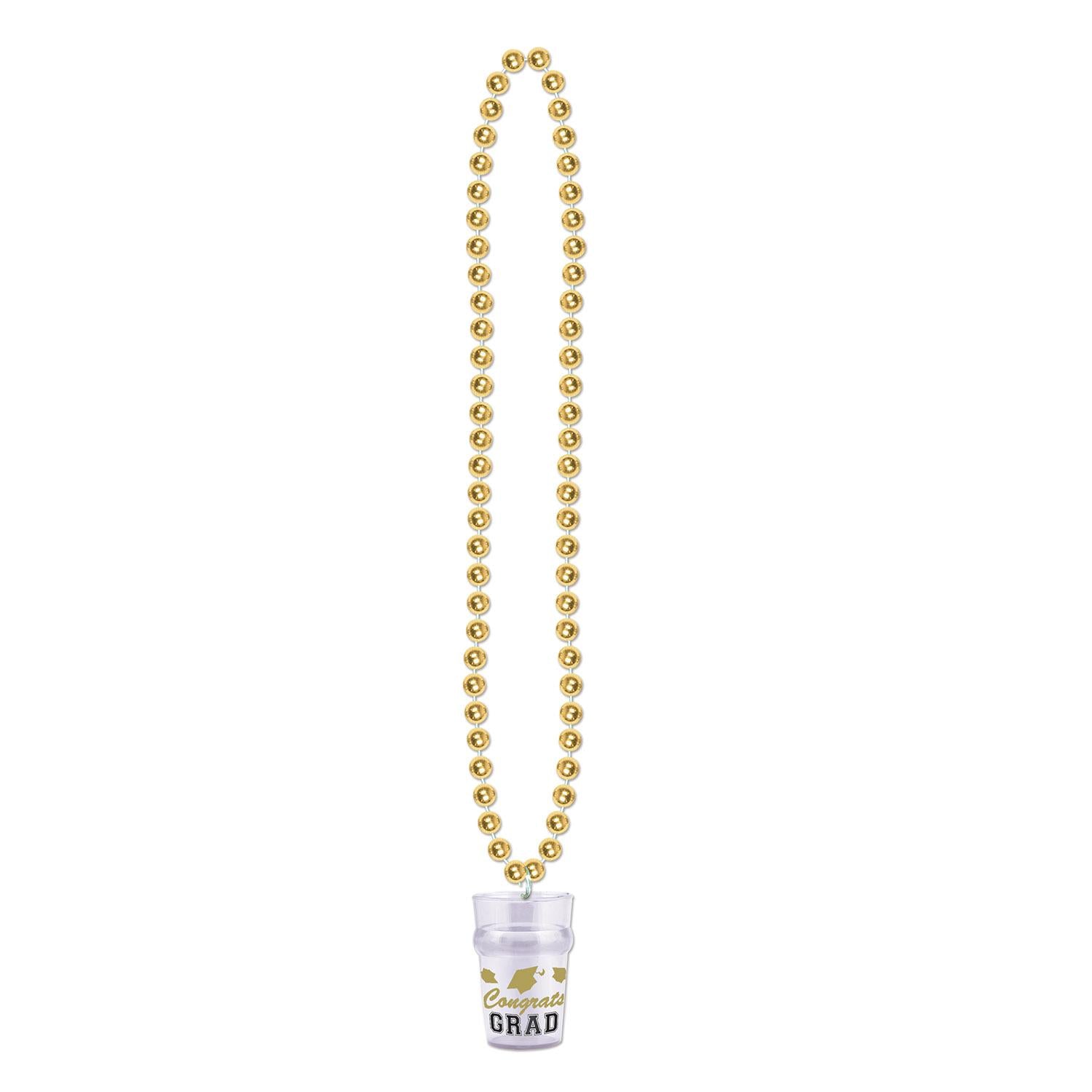 Beistle Bead Necklaces with Grad Graduation Party Glass - gold