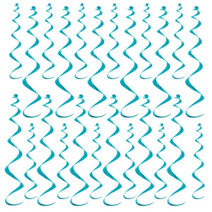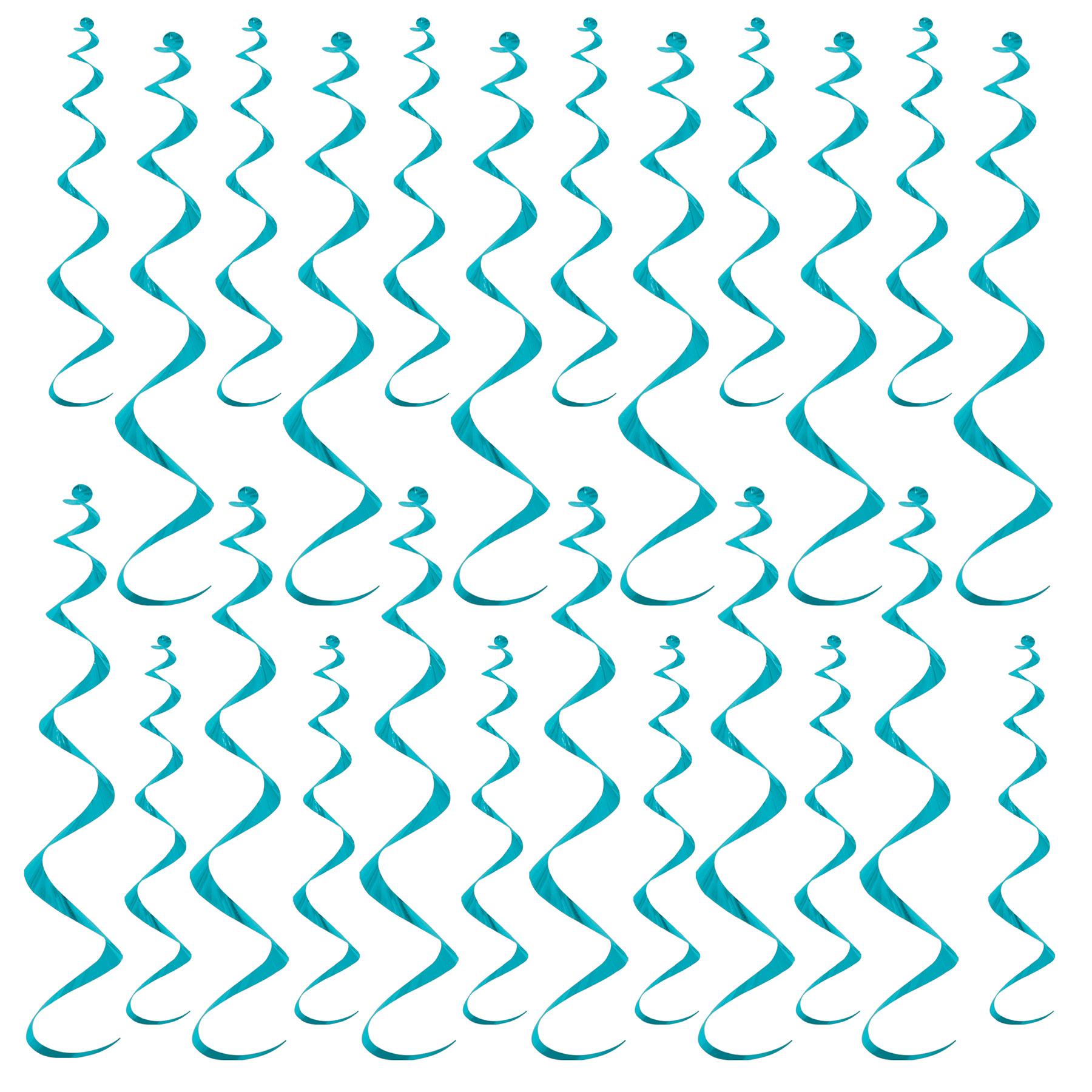 Product Description: The Metallic Whirls - turquoise are a great way to add a touch of elegance to any special occasion. This package contains 12 whirls in varying sizes from 8-13.5 inches and 4-25 inches, all in a beautiful turquoise color. They are perfect for hanging decorations, adding a festive feel to any party. They are made from a high quality metallic material, ensuring durability and long-lasting use. Plus, they ship from our Pennsylvania warehouse within one business day! Add a touch of fun and style to your next event with the Metallic Whirls - turquoise from BulkPartySupplies.com.