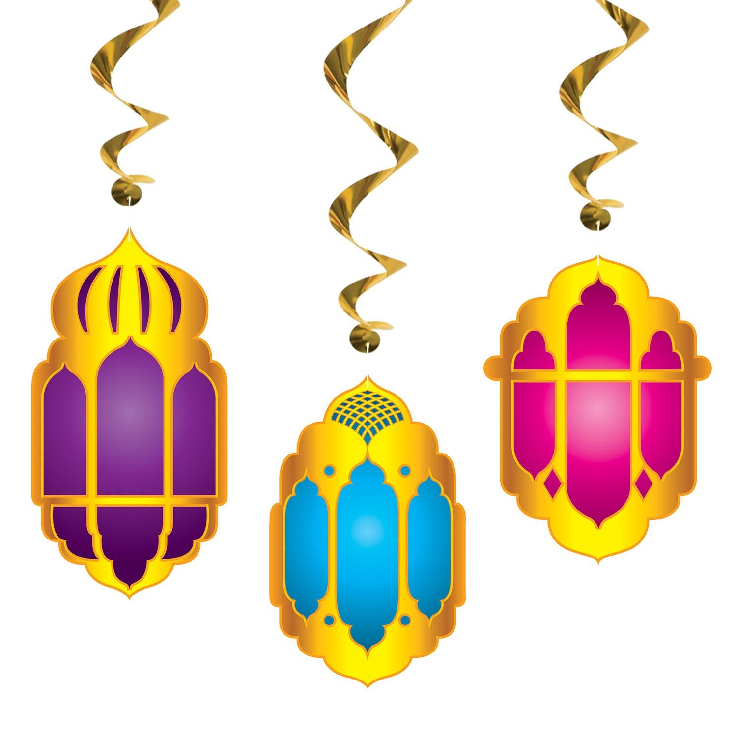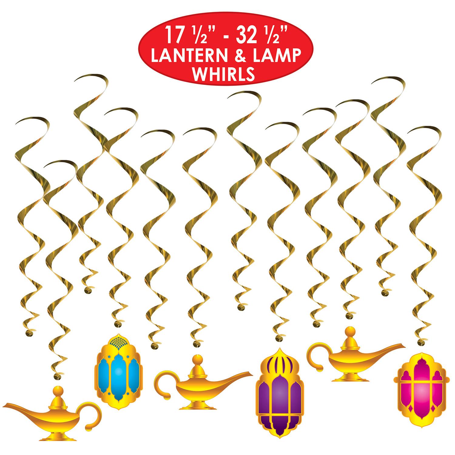 Product Description: The Lantern and Lamp Whirls are the perfect addition to any Arabian Nights themed party. Each package contains 12 whirls, 6 with icons and 6 plain whirls. Each whirl measures between 17.5" to 32.5" long, making them the perfect size for hanging decorations. With the Lantern and Lamp Whirls, you can easily add a touch of Arabian Nights to your party. Plus, they ship from our Pennsylvania warehouse within one business day, so you can get them quickly and easily. Make your next party a magical Arabian Nights experience with the Lantern and Lamp Whirls from BulkPartySupplies.com.