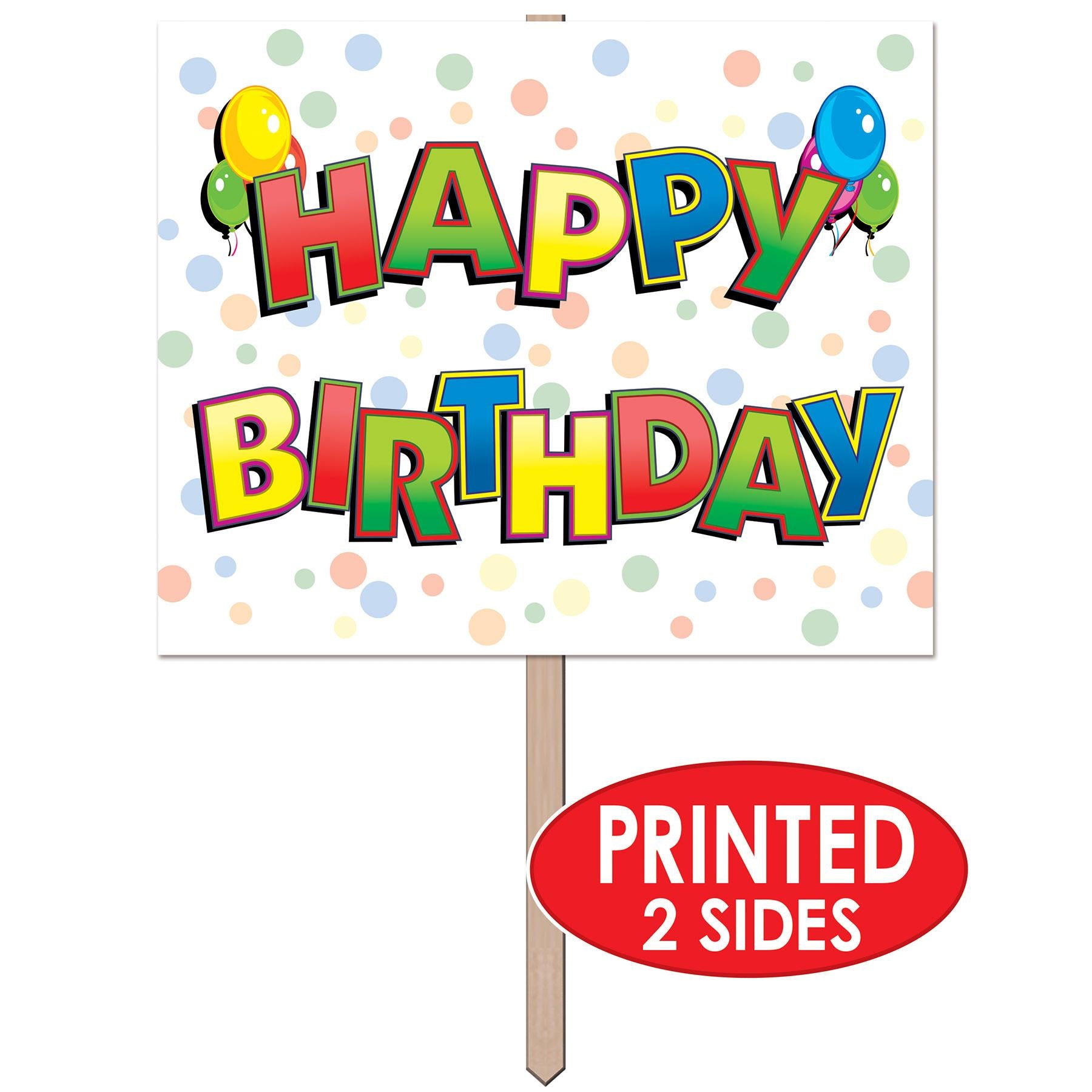 Product Description: Celebrate your special day with the Happy Birthday Yard Sign from BulkPartySupplies.com! This festive, printed two-sided sign is attached to a 24-inch pine stake and measures 12 inches by 15 inches. It is perfect for any birthday celebration, adding a cheerful and vibrant touch to your yard. Plus, it ships from Pennsylvania warehouse within one business day! The Happy Birthday Yard Sign is a must-have for any birthday party or celebration. Its bright and festive design is sure to bring a smile to everyone's face. Add a special touch to your birthday celebration and make it a truly memorable one with this fun and festive Happy Birthday Yard Sign!