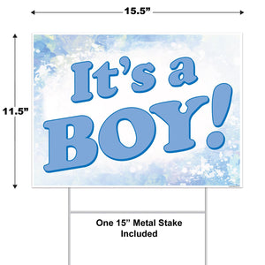 Product Description: Welcome the new arrival in style with the Plastic It's A Boy! Yard Sign from BulkPartySupplies.com. This high-quality sign is crafted from all-weather plastic and includes a metal H stake for easy assembly and display. Measuring 11.5 inches x 15.5 inches, this eye-catching sign is perfect for decorating a baby shower or outdoor area. The bold blue and white design features a baby stroller and the words "It's a Boy!" so everyone knows the exciting news. With one package included in each purchase, you can easily add a special touch to your celebration. Show off your new bundle of joy with the Plastic It's A Boy! Yard Sign from BulkPartySupplies.com.