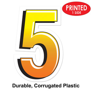 Product Description: The Plastic 5 Yard Sign is the perfect addition to any General Occasion party decorations and accessories. This 18 inch sign is made of durable all-weather plastic and includes a metal H stake for easy assembly. The sign is sure to make a statement at any event and its bright colors and bold design are sure to capture the attention of your guests. With its five yard size, it is sure to be seen from a distance. The Plastic 5 Yard Sign ships from Pennsylvania within one business day so you can make sure your event is a success. Make your party decorations and accessories stand out with the Plastic 5 Yard Sign from BulkPartySupplies.com.