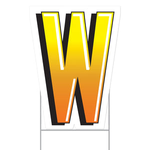 Product Description: The Plastic W Yard Sign is the perfect way to add a festive touch to your general occasion celebrations. The 18 inch sign is made of all-weather plastic and comes with a metal H stake for easy assembly. It's the perfect way to add a special touch to any outdoor event. The sign is sure to make your event memorable, and it ships from our Pennsylvania warehouse within one business day. Add some fun and excitement to your special occasion with the Plastic W Yard Sign from BulkPartySupplies.com.