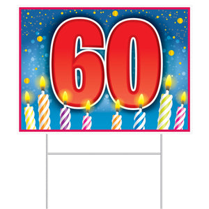 Product Description: Celebrate a milestone birthday with the Plastic 60 Birthday Yard Sign from BulkPartySupplies.com! This all-weather yard sign is perfect for displaying outdoors or indoors. It features a vibrant design and measures 11.5 inches x 15.5 inches. Included is one metal H stake for easy installation. Assembly is required, but it can be done quickly and easily. This item is a great selection for Birthday-Age Specific, Signs, Plastic Yard Signs. You get one Package for this price. The Plastic 60 Birthday Yard Sign will ship from Pennsylvania warehouse within one business day, so you can start planning the perfect birthday celebration right away!