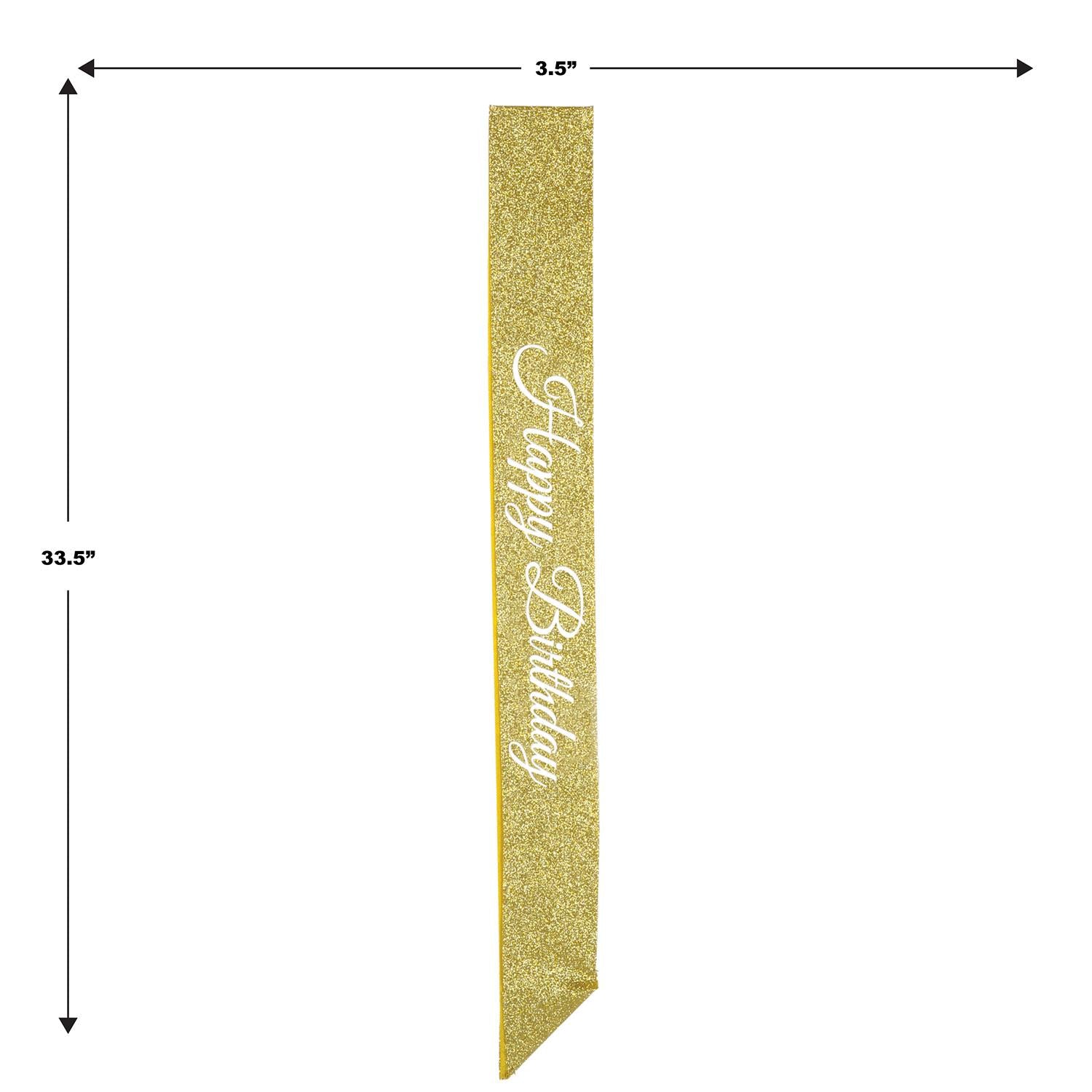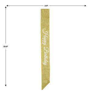 Product Description: Celebrate in style with the Happy Birthday Glittered Sash from BulkPartySupplies.com! This vibrant sash is perfect for any special occasion, whether it be a birthday, costume party, or other festive event. Each package contains one sash, measuring 32.5 inches by 3.5 inches. The sash is covered in bright, colorful glitter and features the words "Happy Birthday" in bold lettering. Make any event extra special with this cheerful sash - it's sure to bring a smile to the guest of honor's face! Plus, your order will ship from Pennsylvania warehouse within one business day! Get ready to party with the Happy Birthday Glittered Sash from BulkPartySupplies.com!