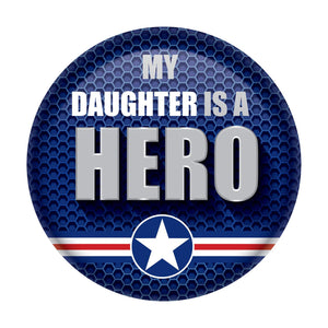 Beistle My Daughter Is A Hero Button- Navy- Star