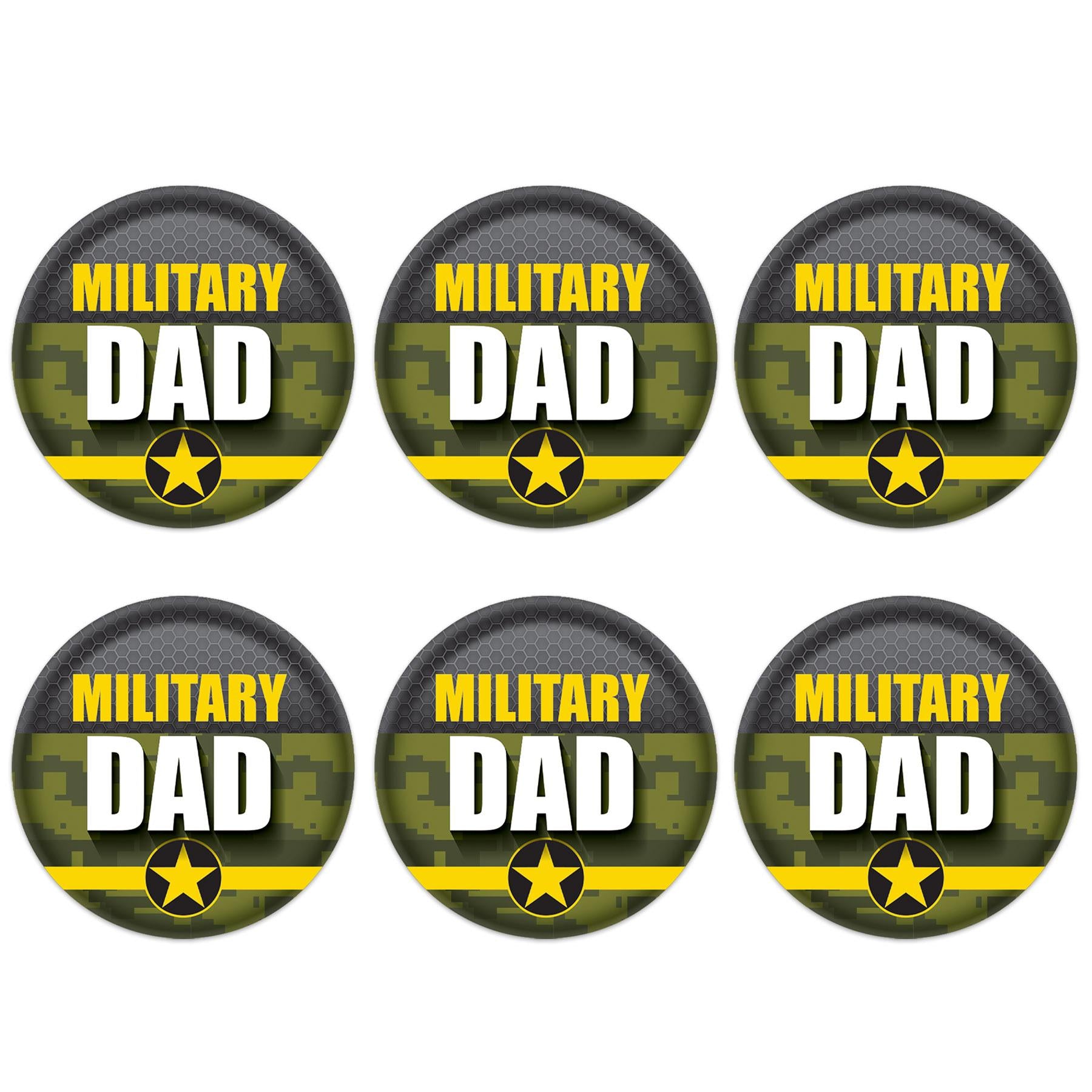 Product Description: This Military Dad Button is perfect for any Patriotic or 4th of July themed party. With one package for this price, you get one 2 inch button featuring a military dad design. This item is a great selection for any Patriotic or Diploma Mill Awards event. It ships from a Pennsylvania warehouse within one business day, so you can be sure you'll have it in time for your event! Show your support for the brave men and women of the military with this Military Dad Button and make your event even more special.