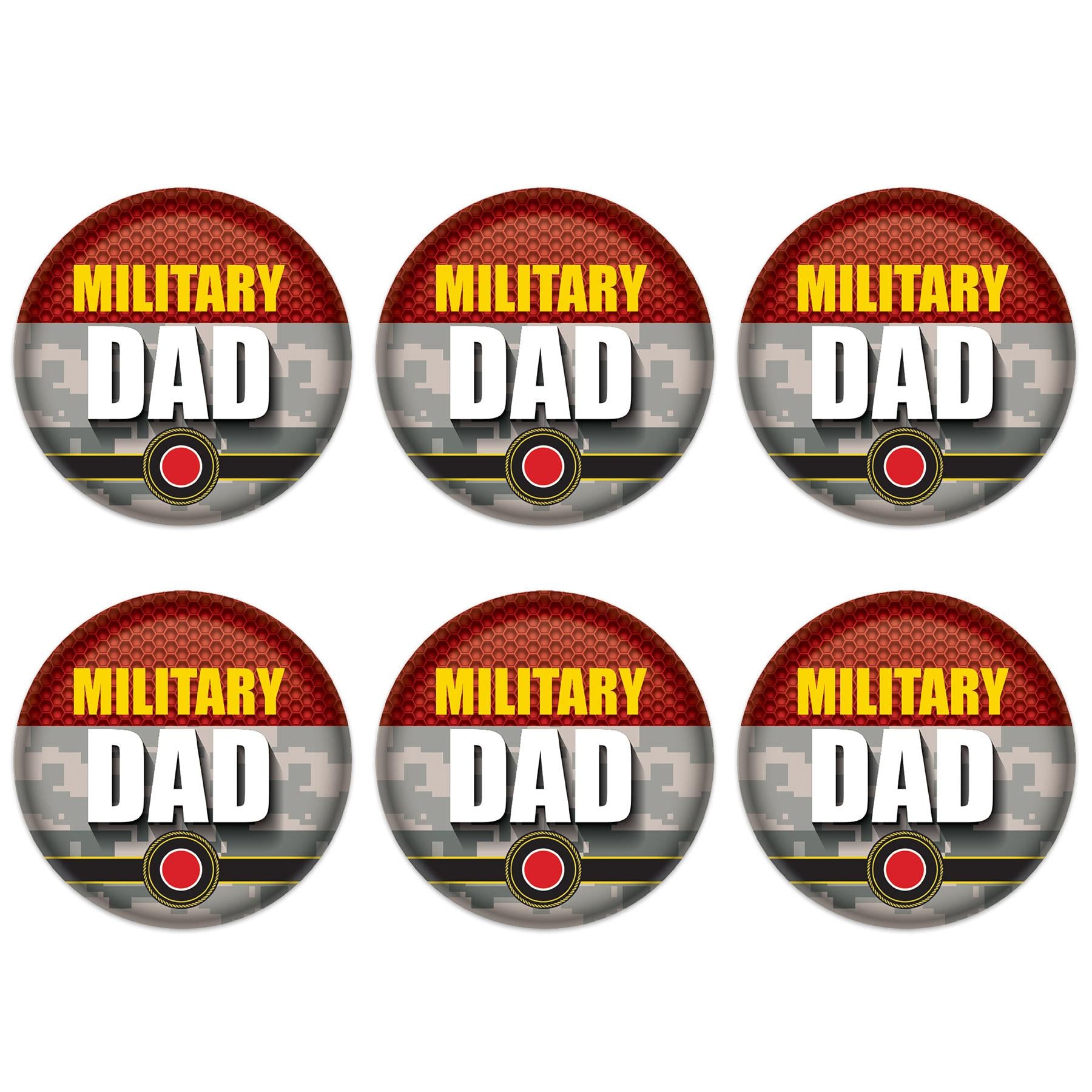 Product Description: The Military Dad Button is the perfect way to show your patriotism! This 2-inch button is made with high-quality material and features the words "Military Dad" printed on it. It's a great way to show your support for our troops and is the perfect addition to any Patriotic or 4th of July-themed party. Plus, it ships from the Pennsylvania warehouse within one business day so you can have it in time for your celebration. Show your pride in the military with the Military Dad Button.