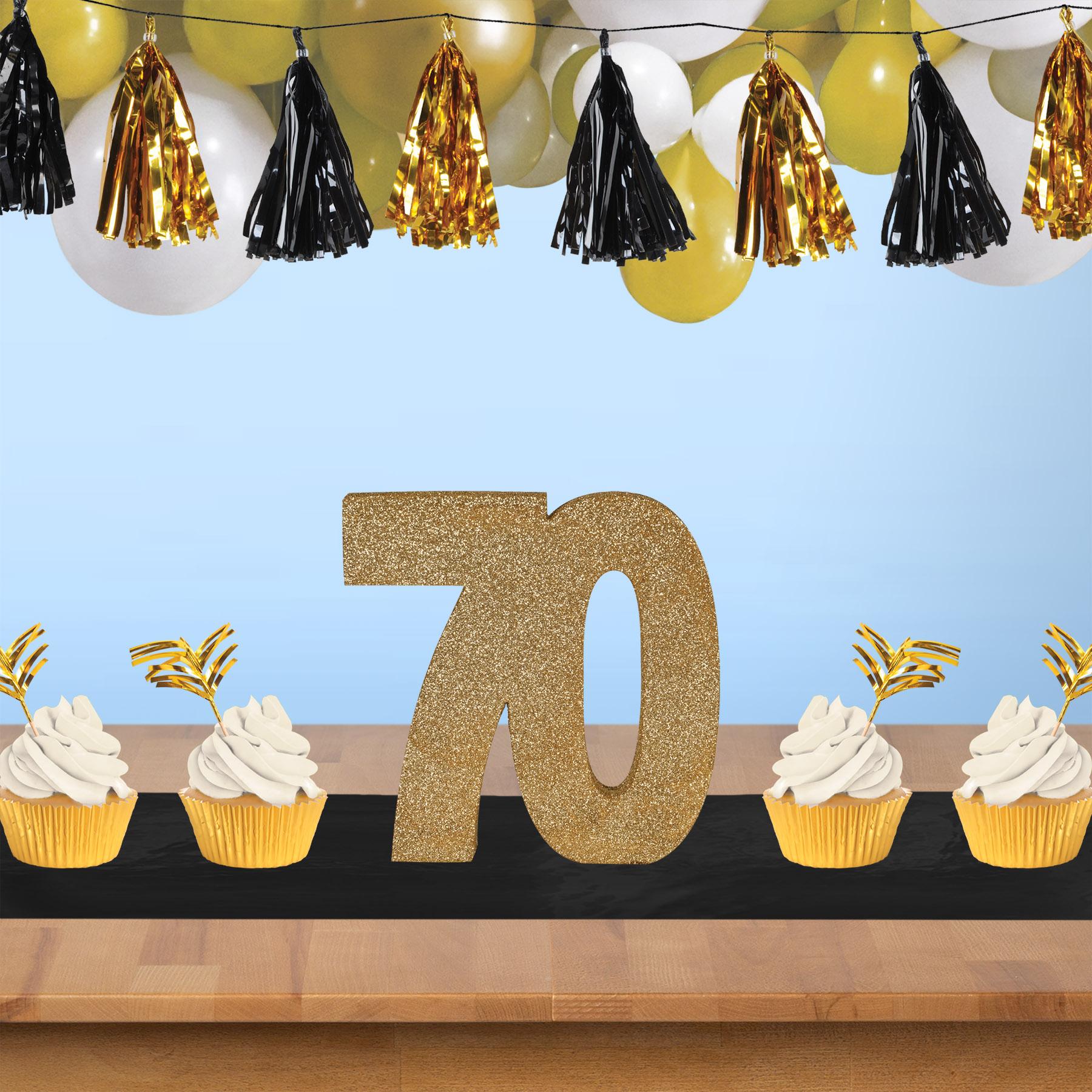 3-D Glittered 70 Centerpiece gold - Celebrate your 70th birthday with a touch of opulence using our gold 3-D centerpiece. Measuring 8 inches x 8 inches x 1 inch, it's a symbol of a life well-lived. Each package includes 1 centerpiece, and with 6 packages per case, your event will be a golden reflection of your journey.