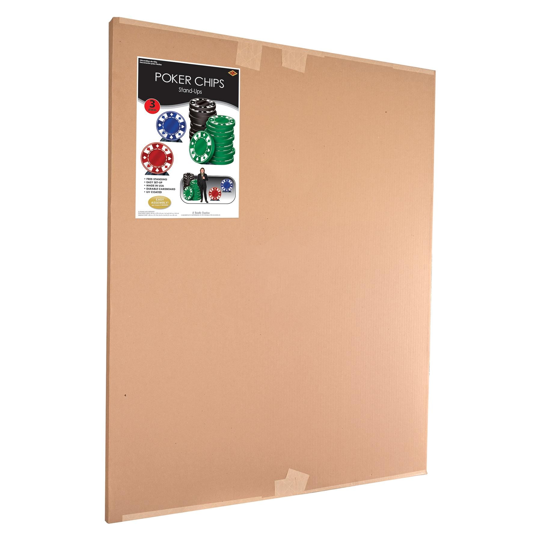 Bet on a winning hand with our Casino Poker Chips Stand-Ups! This set includes 3 stand-ups with attached easels, measuring 31.5 inches by 30 inches and 5 feet by 3 feet 7 inches. Perfect for Prom, Novelty Items, and 3-D Props. Each case contains 1 package.