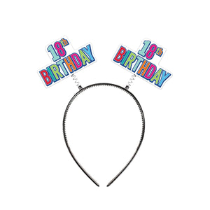 18th Birthday Boppers multi-color - Step into your 18th year with a splash of color and style with our multi-color boppers. Designed for 18th birthday celebrations, they are attached to a snap-on headband for easy wear. Each package includes 1 pair of boppers, and with 12 packages per case, you and your guests will bop in style.
