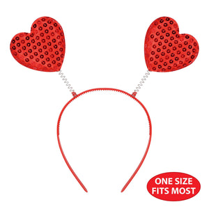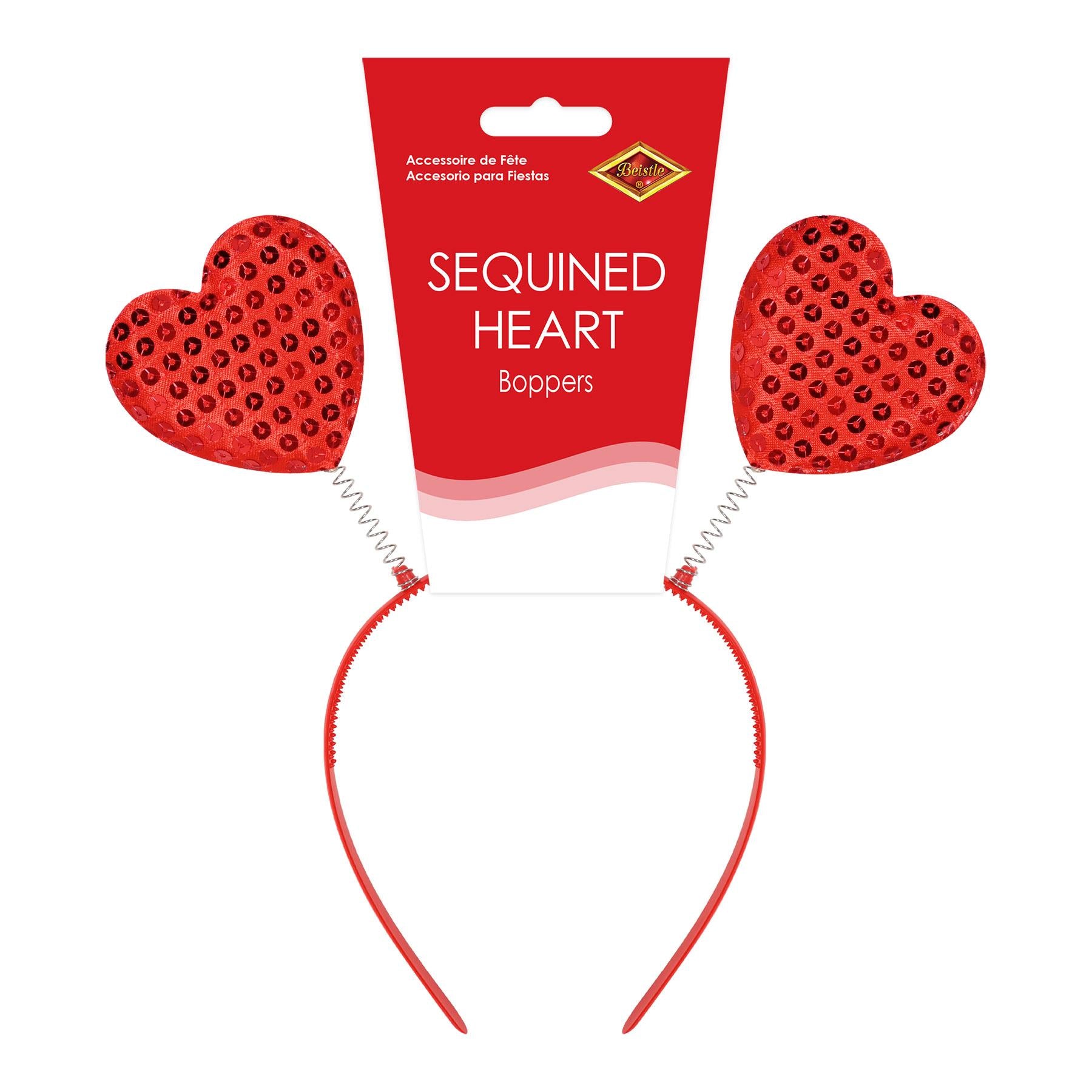 Sequined Heart Boppers: These heart-shaped boppers come attached to a snap-on headband and are perfect for Valentine's Day celebrations. They fall under the categories of Costume Accessories and Boppers and Headbands. Each package contains one set of boppers, and there are twelve sets per case.