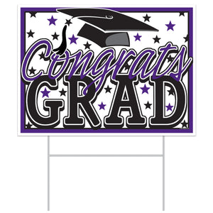 Our Plastic Congrats Grad Yard Sign is the perfect addition to your graduation events. These signs are ideal for creating a festive atmosphere. With dimensions of 11.5 inch x 15.5 inch and packaging of 1/package, each case includes 6 packages, making it easy to cater to gatherings of any size. These versatile items enhance the ambiance of any celebration. Purple; 1 metal h stake included; all-weather; assembly required.