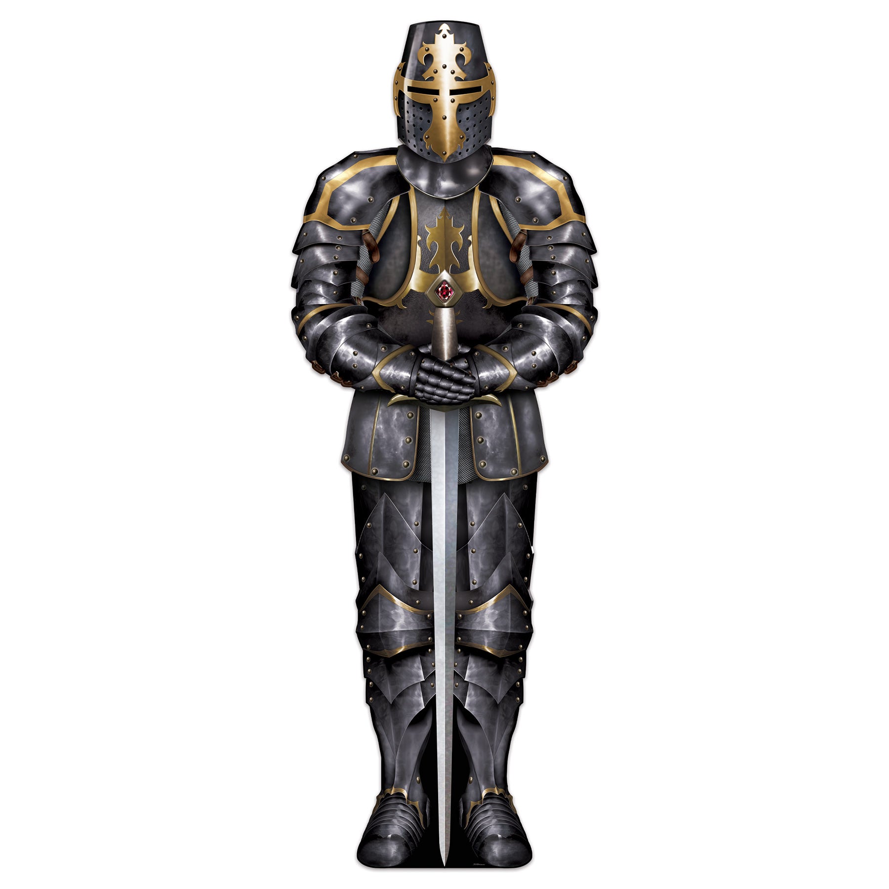 Our Black Knight Stand-Up is the perfect addition to your medieval, new press line items, or fantasy events. These novelty items are ideal for creating a festive atmosphere. With dimensions of 6ft 4 inch x 26.25 inch and packaging of 1/Package, each case includes 4 packages, making it easy to cater to gatherings of any size. These versatile items enhance the ambiance of any celebration. Easel attached; assembly required