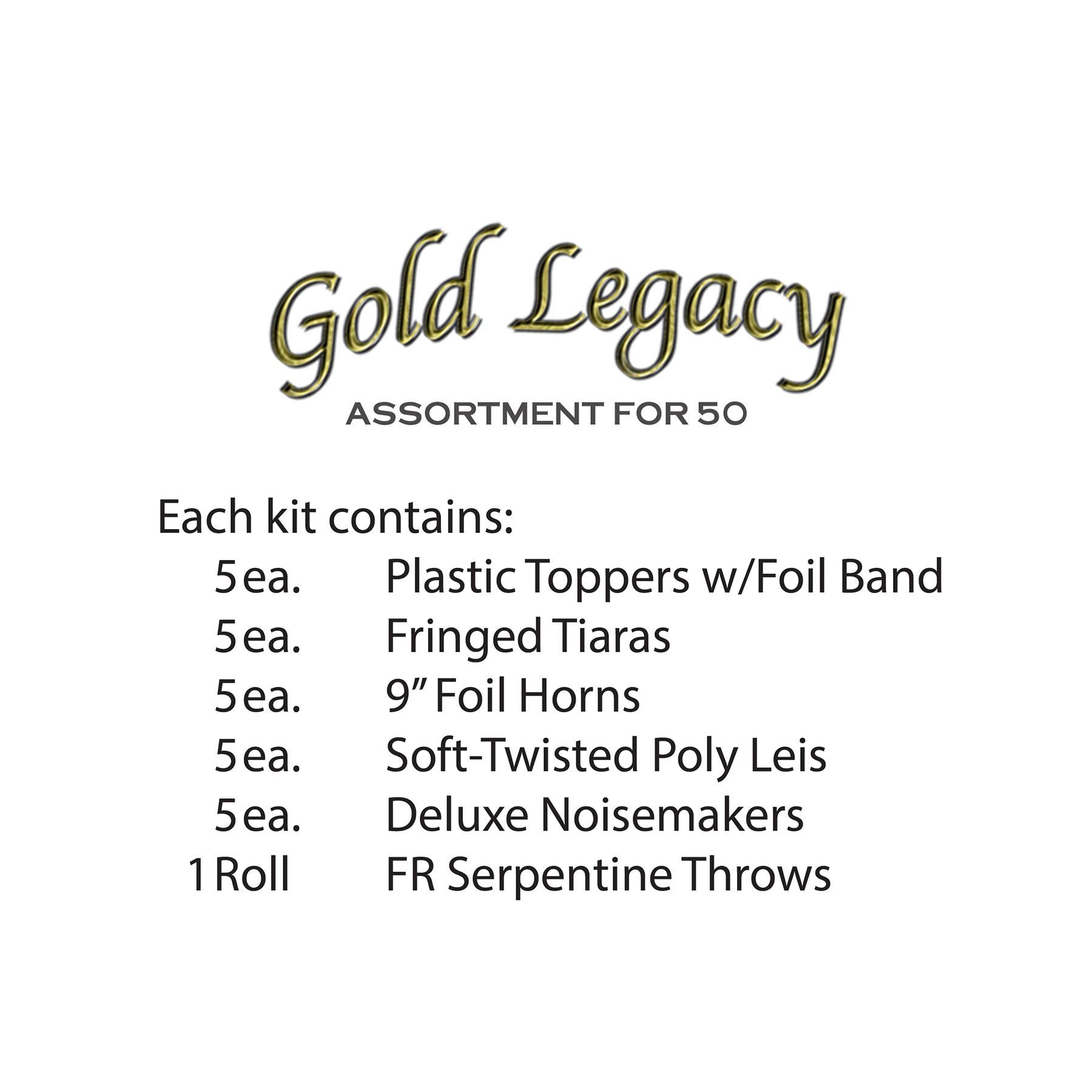 Spread the New Year's Eve cheer with the Gold Legacy Party Kit for 10 People from BulkPartySupplies.com! This all-in-one kit provides everything you need for a fun and festive celebration, including plastic toppers, glittered tiaras, foil horns, poly leis, and more. Perfect for adding sparkle and excitement to your party, this kit ships quickly from our Pennsylvania warehouse. Make your New Year's Eve unforgettable with the Gold Legacy Party Kit!