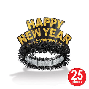 Ring in the New Year with style using the Gold Legacy New Year's Eve Party Kit for 50 People from BulkPartySupplies.com! This festive kit includes everything you need to create a memorable celebration, from plastic toppers with foil bands and glittered fringed tiaras to foil horns, soft-twisted poly leis, deluxe noisemakers, and party bead necklaces. With one-day shipping from our Pennsylvania warehouse, your party supplies will arrive quickly, so you can focus on enjoying the night. Make your New Year’s Eve celebration unforgettable with the Gold Legacy Party Kit!
