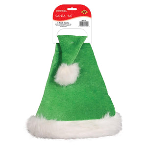 Product Description: Bring festive cheer to your holiday celebrations with our plush Green Santa Hat! Designed in a rich green color, this one-size-fits-most hat is made from soft plush fabric, ensuring a comfortable fit and a stylish addition to your holiday wardrobe. Perfect for Winter or Christmas themed parties, this hat instantly gets guests in the holiday spirit. It’s also a charming decor piece—place it on your mantel or around your home to add a splash of holiday color. Shipped quickly from our Pennsylvania warehouse, this Green Santa Hat is ready to make your holiday gatherings memorable. Celebrate the season in style with BulkPartySupplies.com!