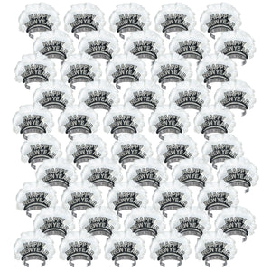 Product Description: Let in the new year with style and elegance with the Happy New Year Bird Of Paradise Tiara from BulkPartySupplies.com. This beautiful black and silver tiara is perfect for any New Years celebration. It is made from a foil material with glitter and feathers that make it a showstopper. This tiara will make you feel like a real bird of paradise on New Year's Eve. It is shipped from our Pennsylvania warehouse within one business day, so you can be sure to have it in time for your party. Let the Happy New Year Bird Of Paradise Tiara help make your New Year's Eve celebration extra special and memorable.