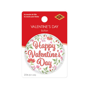 Product Description: these Happy Valentine's Day Buttons are the perfect way to show your love this holiday season! Each package contains 1 button that measures 2" in diameter. These vibrant buttons feature a red heart on a white background with the words "Happy Valentine's Day" printed in the center. Perfect for parties, school events, or just to show someone how much you care. With 6 buttons per case, you'll have enough to share with everyone! Add some fun to your Valentine's Day celebration with these Happy Valentine's Day Buttons.
