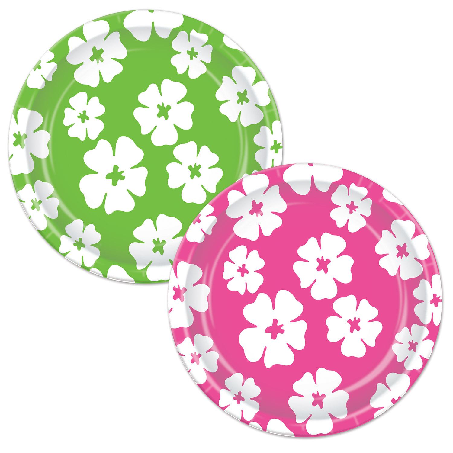 Product Description: Our Hibiscus Plates are the perfect addition to your next Luau themed party! This set comes with 8 plates in an assortment of cerise and lime green colors, measuring 9" in diameter. They are made of high quality materials and are sure to impress your guests. With their vibrant colors, they are sure to brighten up any party table. Furthermore, they are shipped from our Pennsylvania warehouse within one business day, so you can be sure to receive your plates in time for your event. Our Hibiscus Plates are a great way to add a tropical touch to your party decorations.