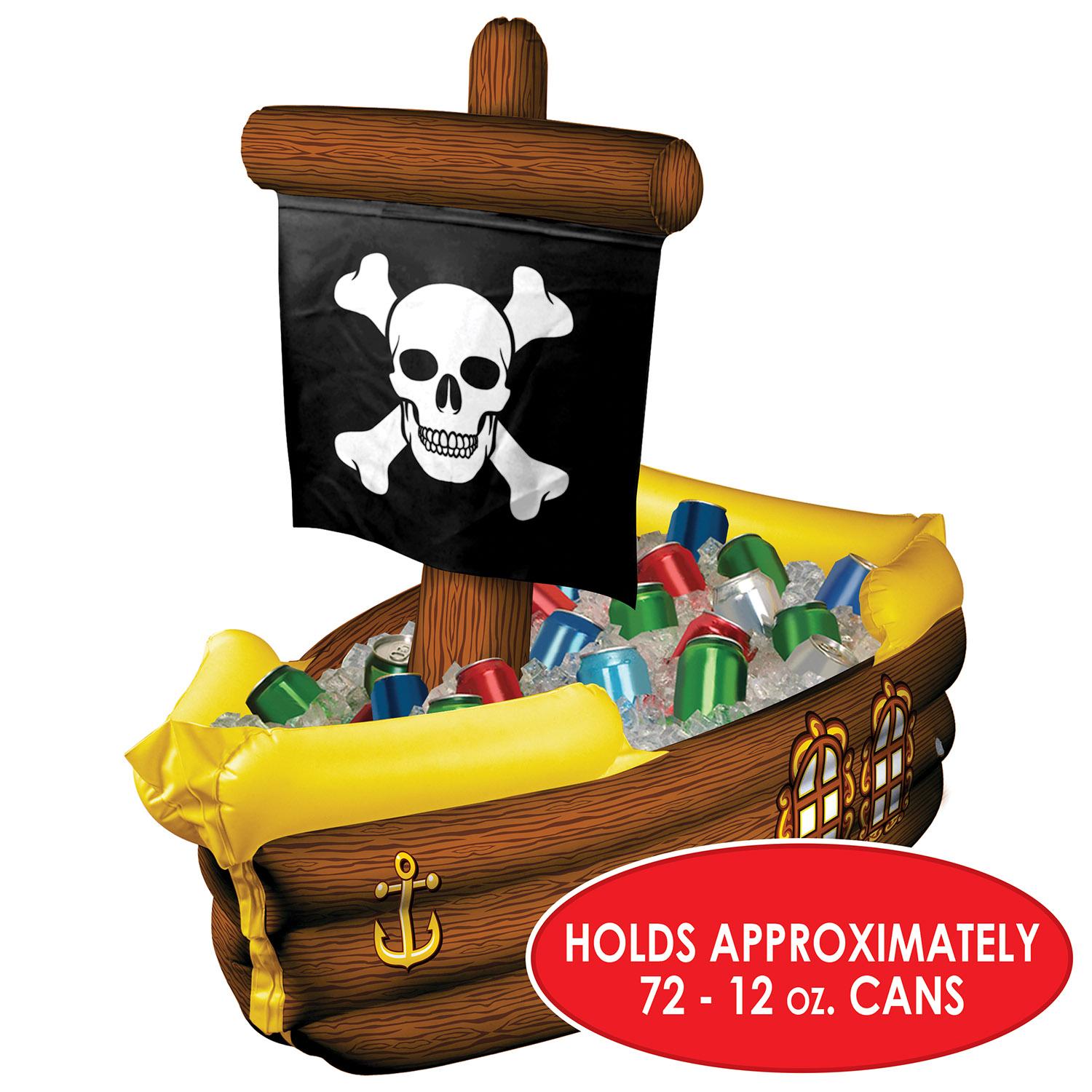 Product Description: The Inflatable Pirate Ship Cooler is perfect for your next themed party! It's 3' 3" wide and 33" tall, making it a great center piece or decoration. It holds approximately 72 12-oz cans, so you can keep your drinks cold and your party going. Plus, with its pirate theme, it's sure to be a hit with your guests. This item is also perfect for pirate and novelty items, inflatables and more. Plus, it ships from our Pennsylvania warehouse within one business day! Get your Inflatable Pirate Ship Cooler today and make your party an event to remember!