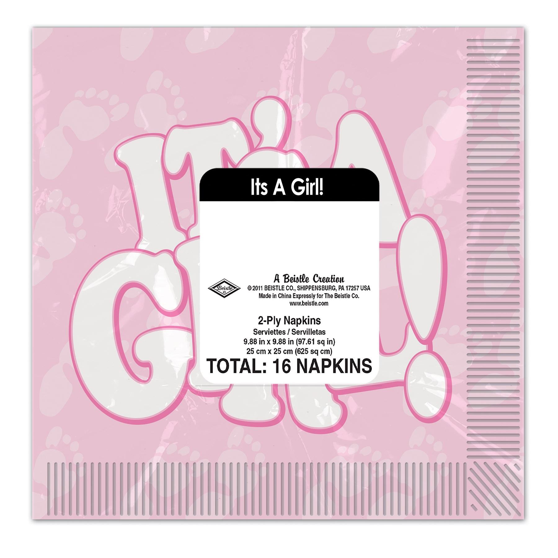 Product Description: Celebrate the arrival of your new baby girl with Our It's A Girl! Beverage Napkins! These 2-ply napkins are perfect for adding a special touch to your baby shower. The package includes 16 napkins, so you'll have plenty to decorate your tables. The bright pink color and "It's A Girl!" message will make your guests feel like they're part of the celebration. Plus, they can be used to help keep your tables clean. Your guests will love the special touch these napkins add to your party. And with orders shipping from our Pennsylvania warehouse within one business day, you can get your party decorations quickly and easily. Add a little extra joy to your baby shower with Our It's A Girl! Beverage Napkins!