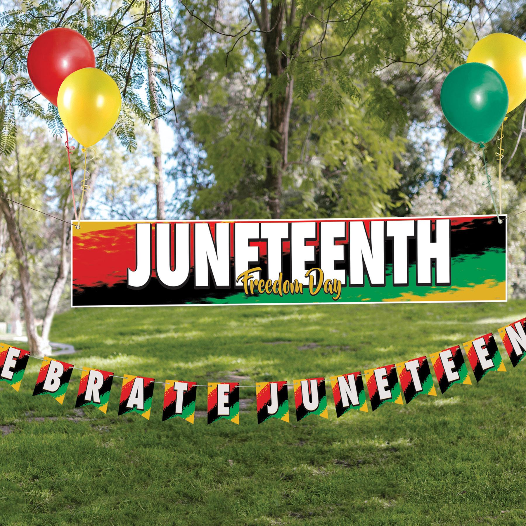 Product Description: Our Juneteenth Banner (Case of 12) is the perfect way to celebrate Juneteenth. This banner is made of all-weather material, making it ideal for both indoor and outdoor use. At 12 inches x 5 feet, it is sure to make a statement. The package count is 1/package and 12 packages per case, totaling 12 units per case. This banner is shipped from our Pennsylvania warehouse within one business day. Our Juneteenth Party Supplies collection of decorations will make sure your event is a success. Celebrate Juneteenth with BulkPartySupplies.com!