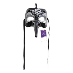 Product Description: Our Long Nose Mask is the perfect choice for your Mardi Gras themed party. This black and silver mask is decorated with black ribbon ties and is sure to be a hit with your guests. The Long Nose Mask is a great way to get your guests in the spirit of the celebration and add some fun to the festivities. Not only does it look great, but it's also comfortable and lightweight, making it easy to wear for hours of fun. Plus, it ships from our Pennsylvania warehouse within one business day, so you can have it in time for your big event. Get ready for your Mardi Gras party with Our Long Nose Mask!