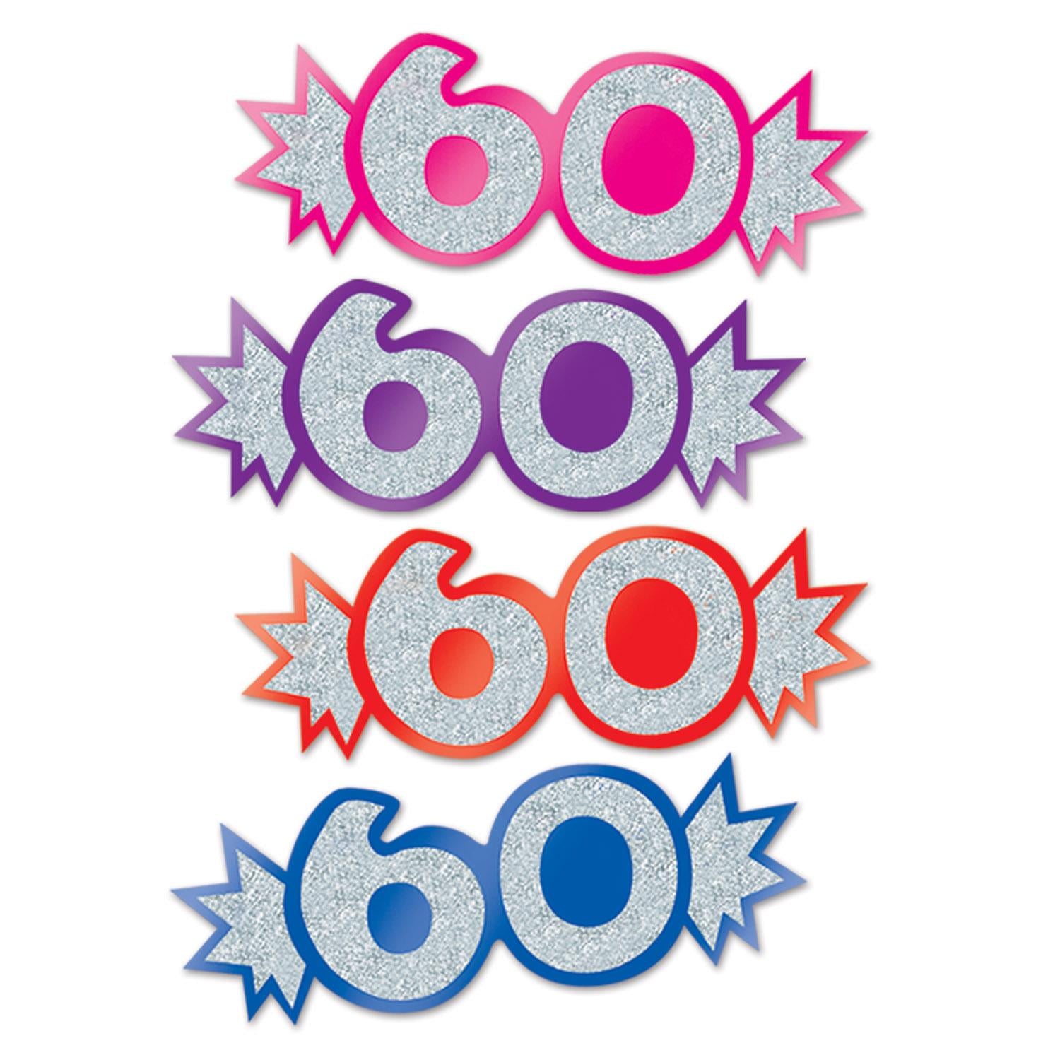 60th Birthday Party Mini Glittered Foil Cutouts (8/Pkg)