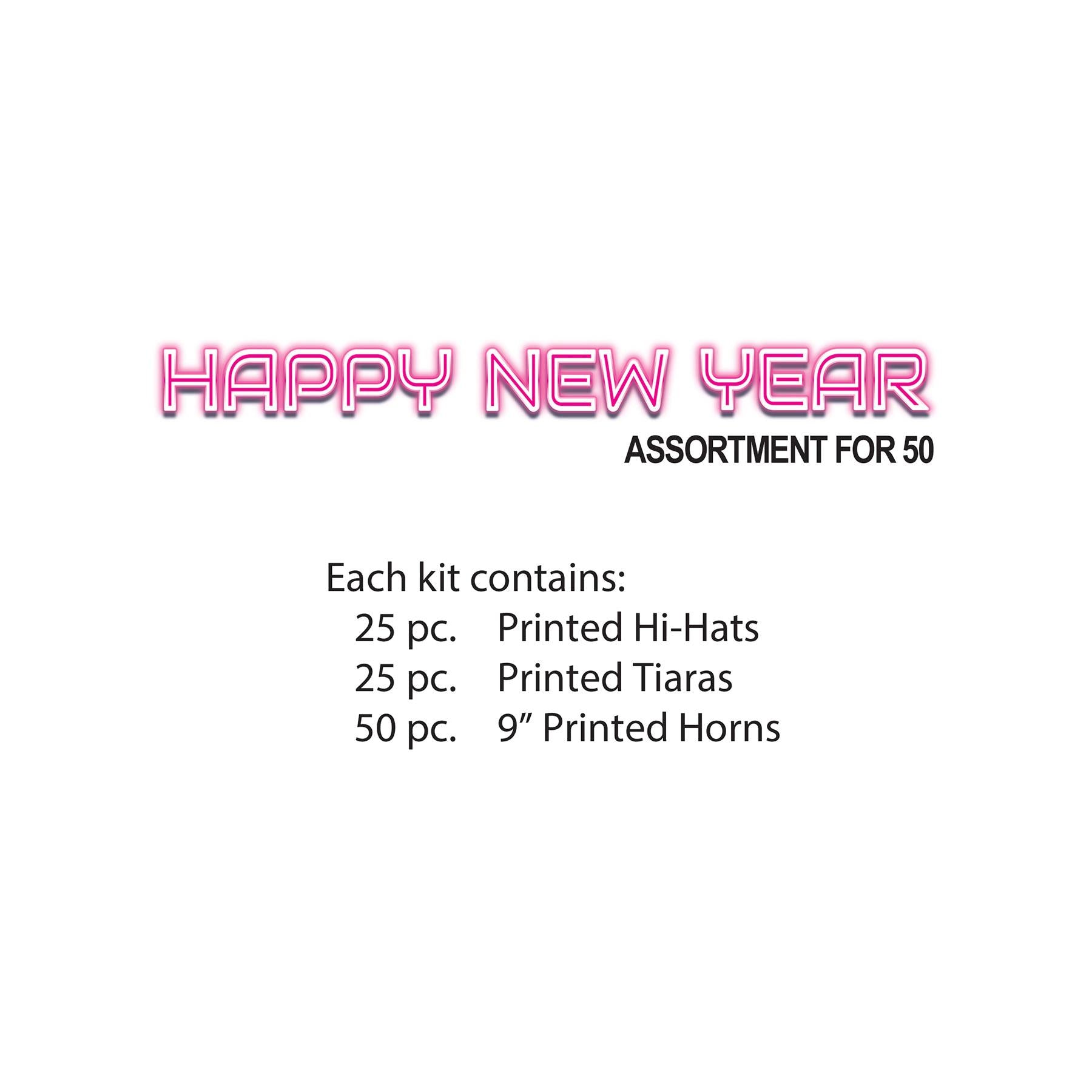 Celebrate the New Year in style with the New Year's Rave Party Kit for 50 People from BulkPartySupplies.com! This kit provides all the essentials you need to host a fun and memorable New Year's Eve party. With 25 printed hi-hats, 25 printed tiaras, and 50 9-inch printed horns, your guests will be ready to ring in the New Year with excitement. This kit ships quickly from our Pennsylvania warehouse, ensuring your supplies arrive in time for the big night. Get the New Year's Rave Party Kit for 50 People today and make your New Year's Eve celebration unforgettable!