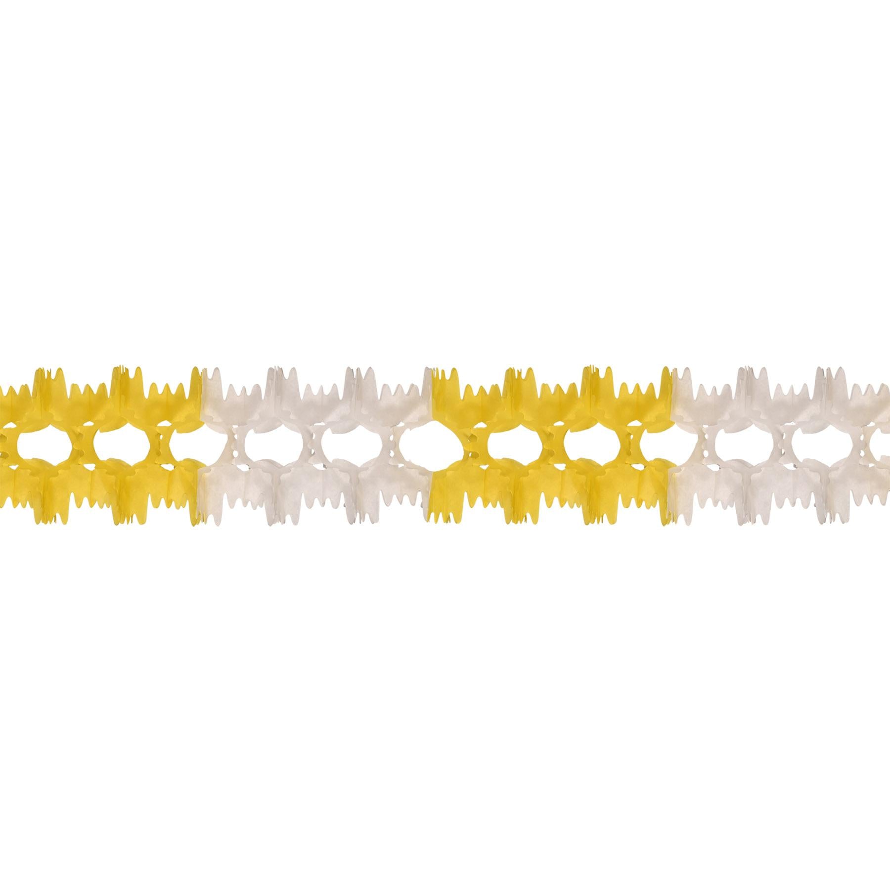Product Description: Introducing the Pageant Garland - the perfect addition to any General Occasion party. With its canary and white design, this 7" x 14' 6" garland is sure to make a statement! The Pageant Garland is made of regular tissue, making it lightweight and easy to hang. It's the perfect way to decorate your party space, from doorways and walls to ceilings and more. Plus, it ships from Pennsylvania warehouse within one business day, so you don't have to worry about running out of time. With the Pageant Garland, you can create the perfect atmosphere for your General Occasion party.