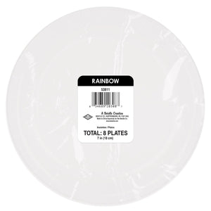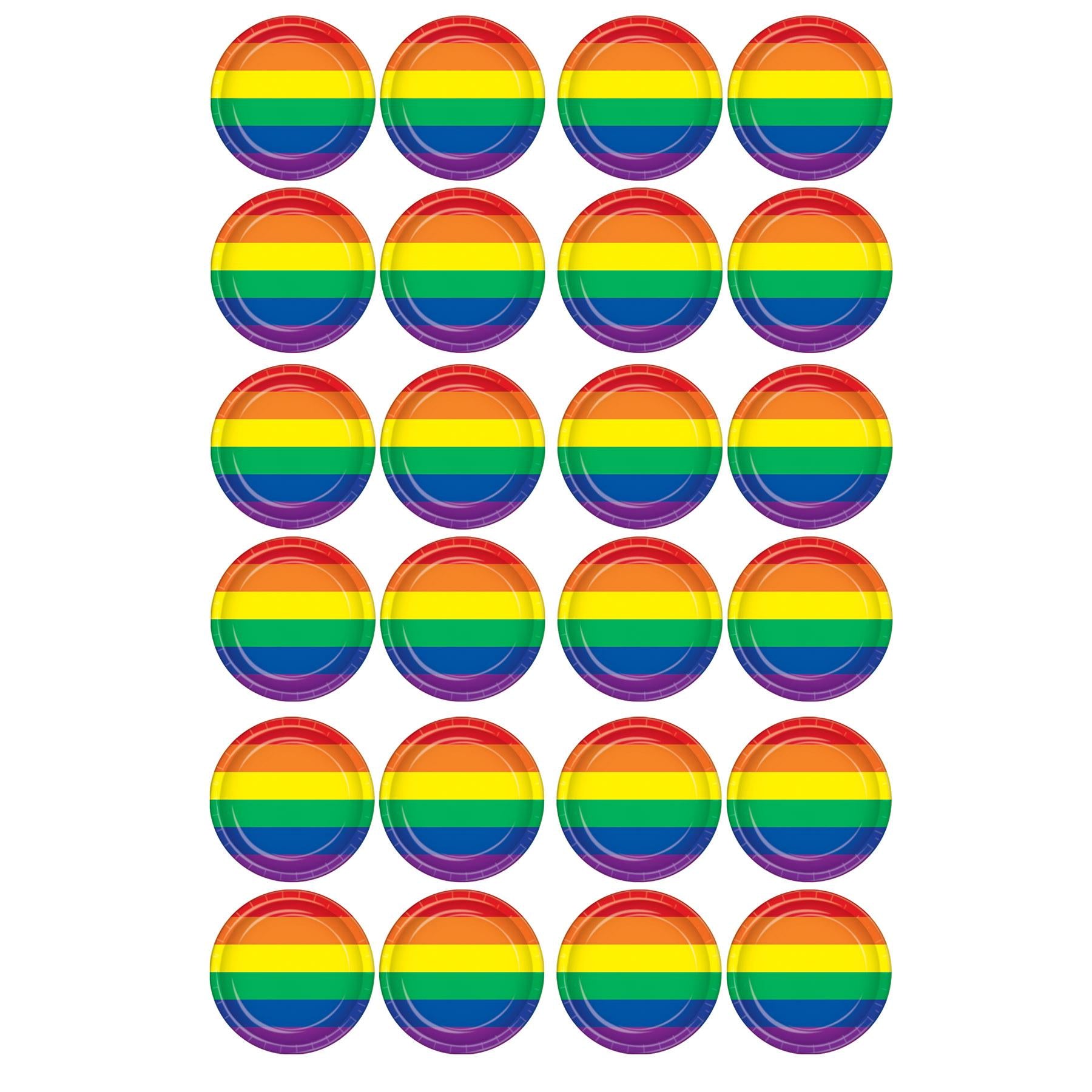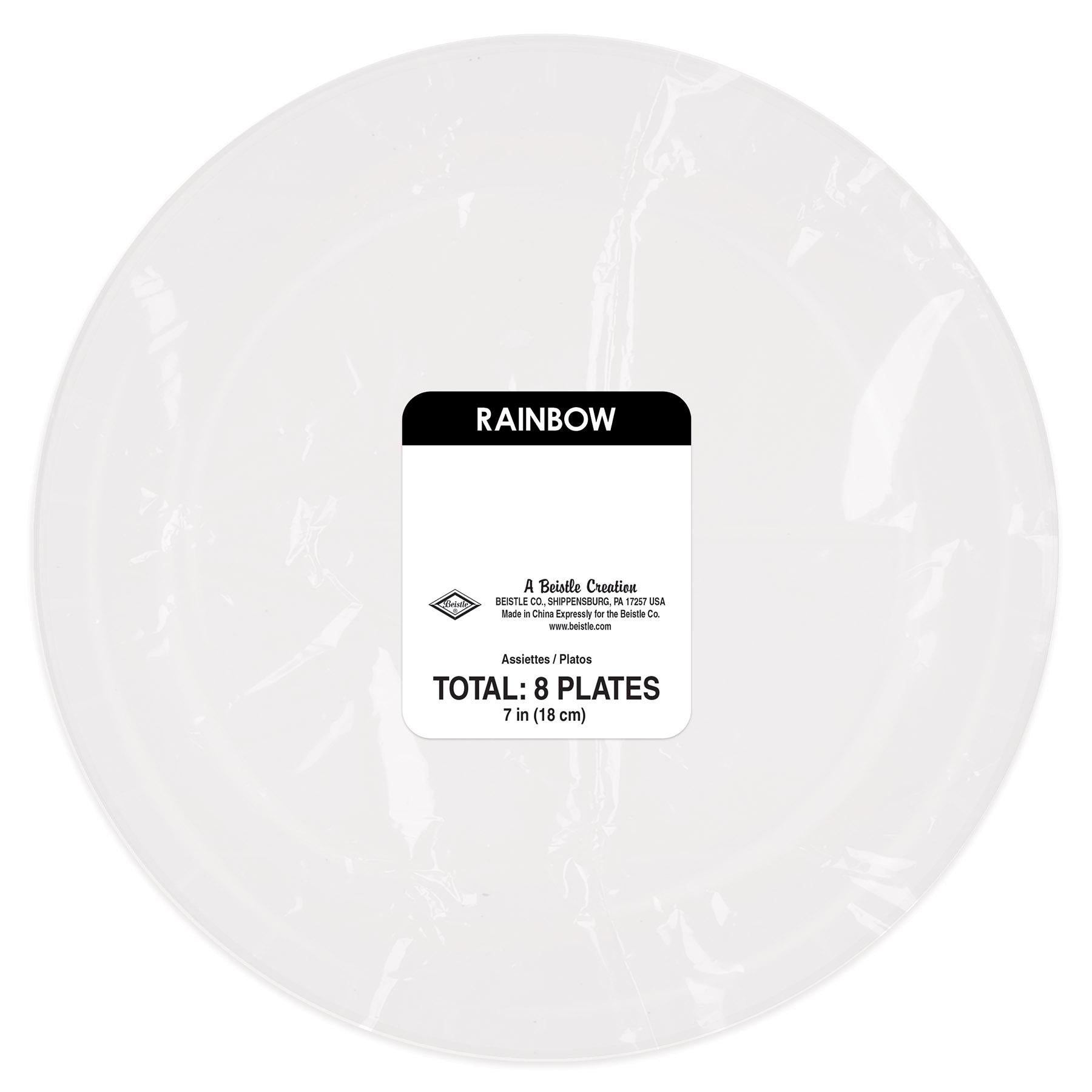 Product Description: Our Rainbow Plates are the perfect addition to any themed party. These 7 inch plates come in packs of 8, with 12 packages per case. They are the perfect way to add some color and fun to your party table. The bright colors of the plates will bring a smile to everyone's face. These plates are part of Our Rainbow Themed Party Supplies, and they pair perfectly with the matching tableware and napkins-lunch. Make your celebration even more special with these vibrant plates. They are sure to make your party a hit!