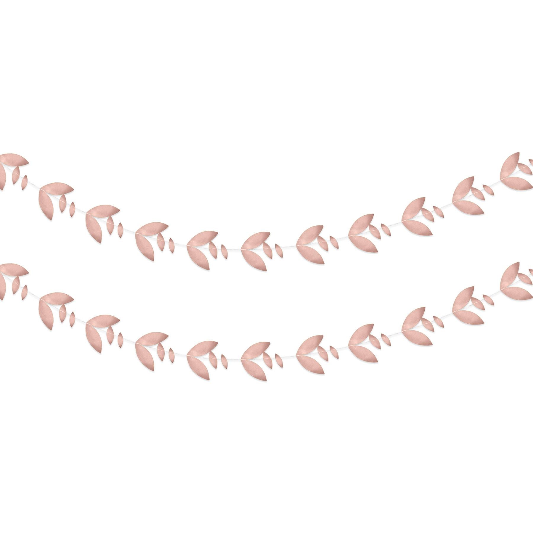 Product Description: This Rose Gold Foil Leaves Garland is a great way to add a touch of elegance to your special occasion. The garland is 11' long and features beautiful rose gold foil leaves that will sparkle in the light. The garland comes in a package of 12, so you can easily decorate a large area. Perfect for weddings, anniversaries, and other special occasions, this garland will add a decorative touch to any event. With its timeless look and long-lasting quality, our Rose Gold Foil Leaves Garland is sure to be a hit at your next event.
