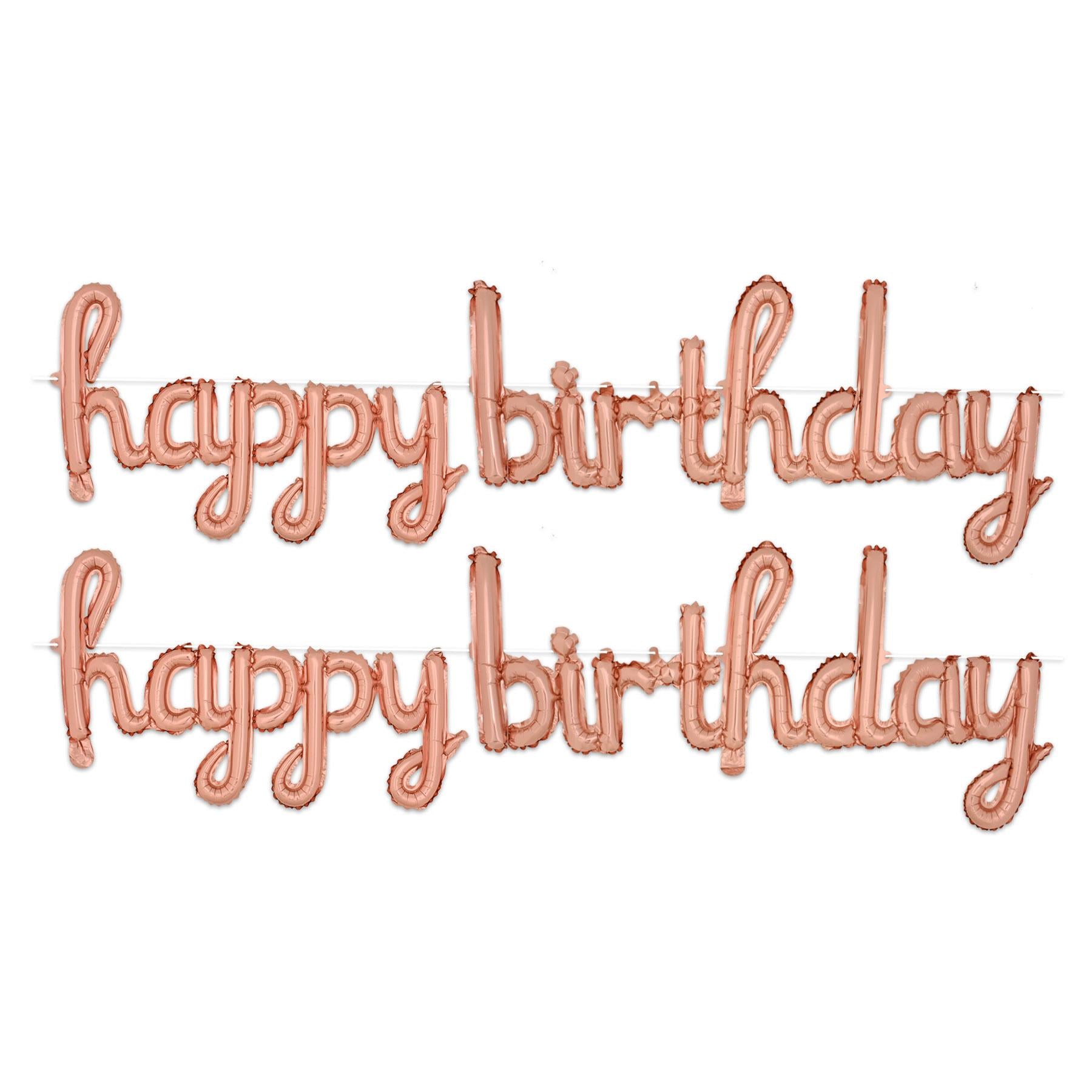 Script Rose Gold Happy Birthday Party Balloon Streamer