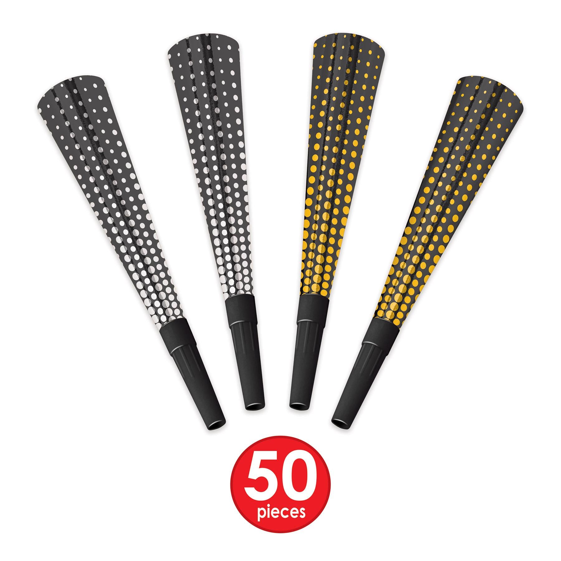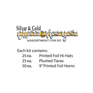 Celebrate the New Year in style with the Silver & Gold Cheers To NY New Year's Eve Party Kit from BulkPartySupplies.com! This kit provides all the accessories you need to throw a fabulous party, including printed hi-hats, plumed tiaras, and foil horns for up to 50 guests. With a sleek silver and gold design, your New Year's Eve celebration will be one to remember. Make your night special with the Silver & Gold Cheers To NY Party Kit!