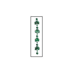 Details: Show off that St. Patrick's Day Spirit by Sporting at Least one of these Shamrock Bead Necklaces! They are made of a lightweight plastic with a metallic green finish. The necklace itself alternates between green shamrocks little green balls. Comes one per package. 33 Inch. 12 per case.
