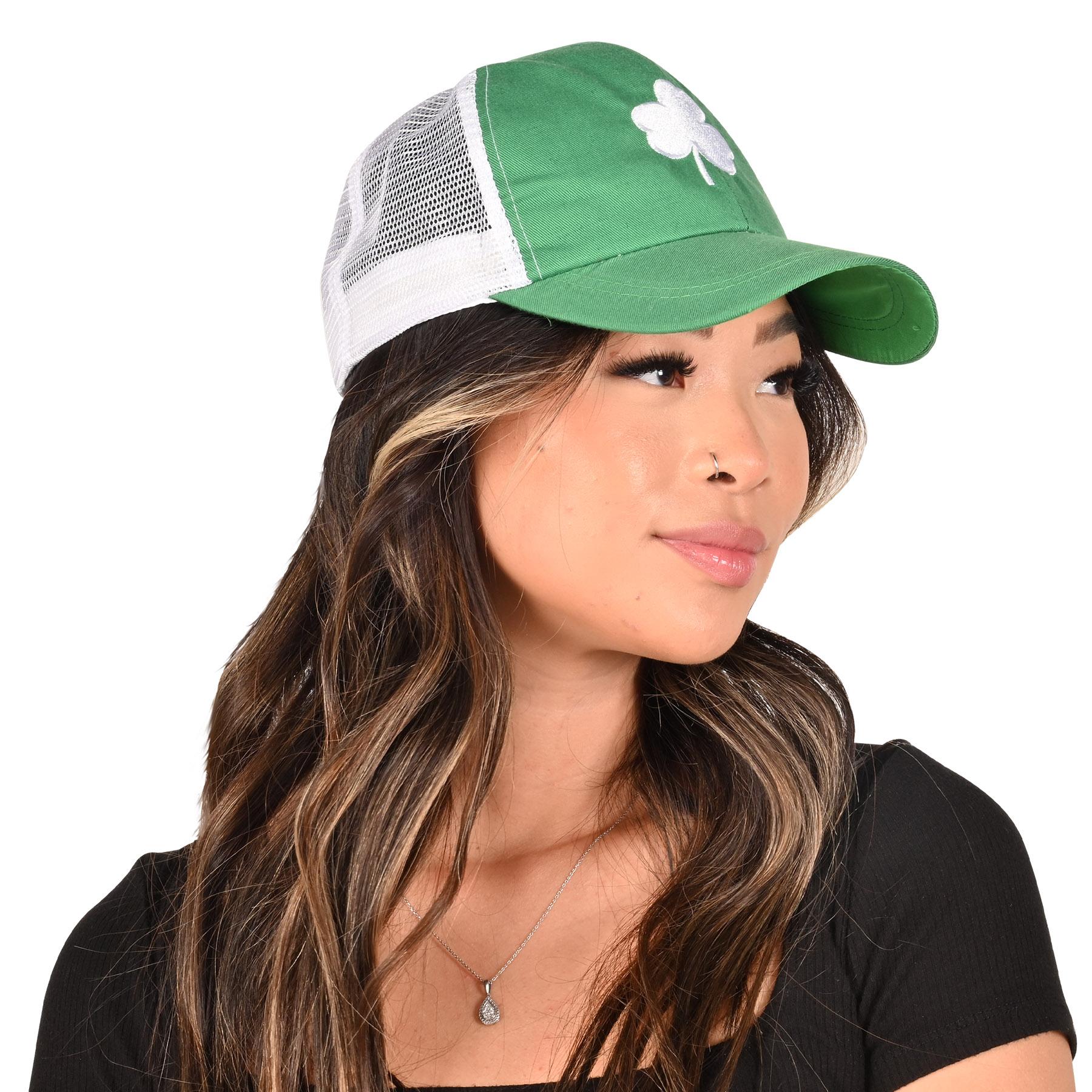This St. Patrick's Day Shamrock Cap is an essential accessory for any St. Patrick's Day celebration. Featuring a stylish shamrock design, this adjustable fabric cap is sure to put you in the festive spirit. Perfect for parades, parties, or just a day of fun, this adjustable cap can fit most head sizes. The fabric construction and classic green color make it a great addition to any wardrobe. With a UPC of 034689228806 and one hat in each package, and 12 packages per case, it's easy to stock up for all your St. Patrick's Day needs. Let BulkPartySupplies.com help you show off your holiday spirit this St. Patrick's Day with the St. Patrick's Day Shamrock Cap.