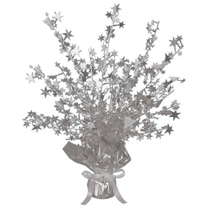 Have your event shine with Our Star Gleam 'N Burst Centerpiece! This eye-catching centerpiece is designed with silver stars that bursts from the center, creating a beautiful and unique look. It measures 15" and is perfect for any general occasion, from birthdays to anniversaries. Set the centerpiece on the tables to bring your event to life! This product comes in a package of 1 and 12 packages per case. Make sure to add some sparkle to your event with the Star Gleam 'N Burst Centerpiece and UPC 034689118077.
