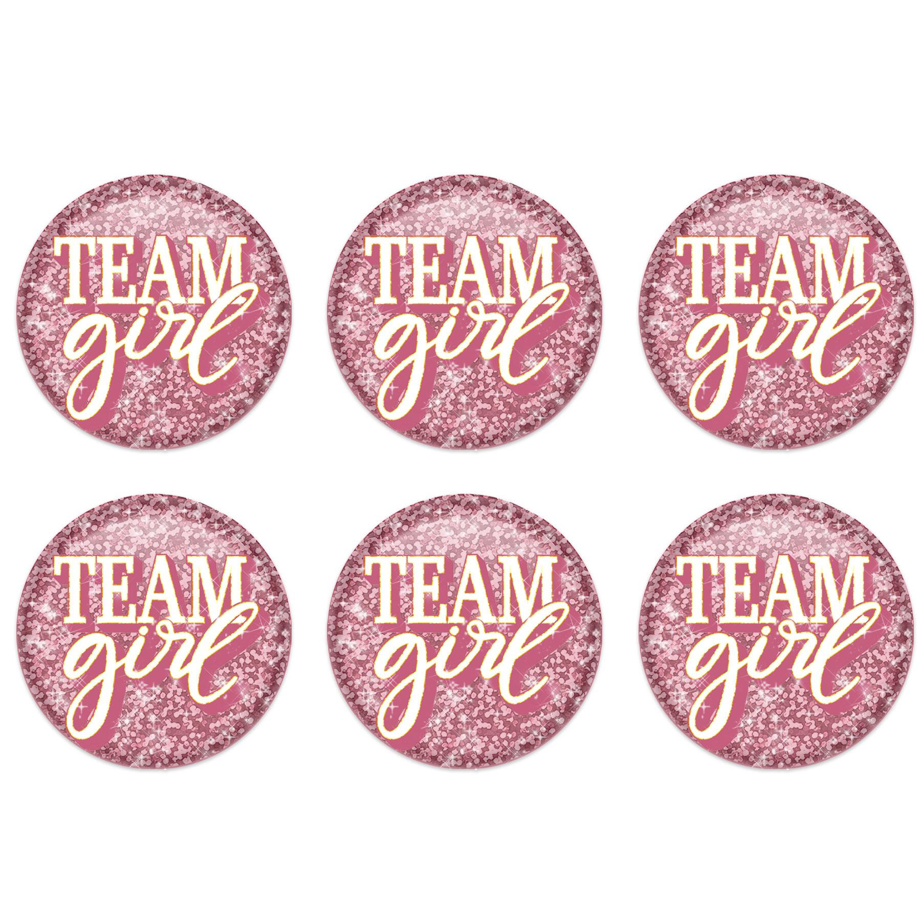 Product Description: Our Team Girl Button (Case of 6) is perfect for any Baby Shower party! These 2-inch buttons feature a diploma mill awards design with the words "Team Girl" printed in pink and blue. Each package contains one button and there are 6 packages per case, providing a total of 6 units per case. These buttons are perfect for awarding the special girls in your life and make great keepsakes. They are easy to ship, as they are shipped from the Pennsylvania warehouse within one business day. Make sure to add our Team Girl Button (Case of 6) to your Baby Shower party supplies for a unique and memorable event!
