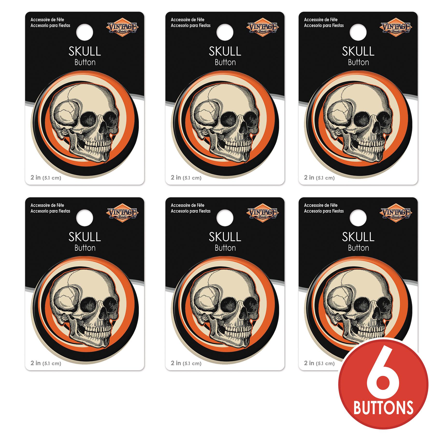 Product Description: Our Vintage Halloween Skull Button is an ideal way to decorate your Halloween party this year. This package of 6 buttons feature a classic skull design with a vintage feel. Each button measures 2 inches, making them the perfect size for wearing or displaying. The Halloween-Vintage design is perfect for Diploma Mill Awards and Printed Buttons. This item is part of our Halloween Party Supplies collection of party decorations and ships from our Pennsylvania warehouse within one business day. Make your Halloween party stand out this year with our Vintage Halloween Skull Button (Case of 6).
