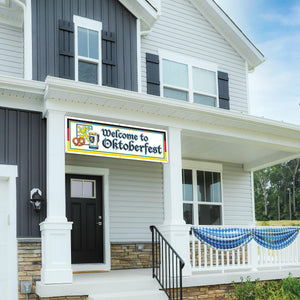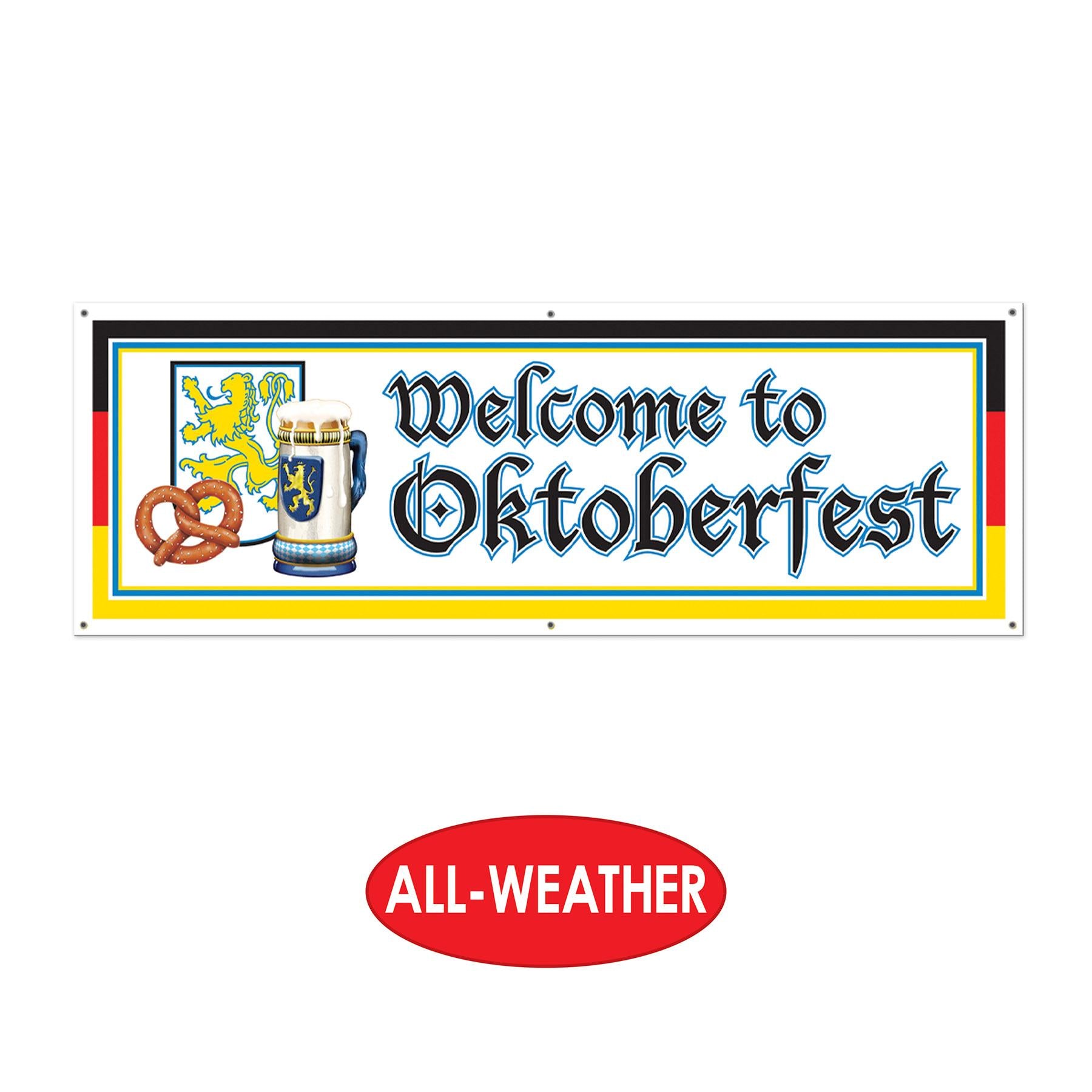 Product Description: Welcome to Oktoberfest! Our Welcome To Oktoberfest Sign Banner is the perfect way to add a festive touch to your Oktoberfest celebration. This all-weather banner is 5' x 21" and features 4 grommets for easy hanging. It is ideal for indoor or outdoor use and is sure to make your Oktoberfest party stand out. With its vibrant colors and festive design, this banner will make your guests feel right at home. Plus, it ships from our Pennsylvania warehouse within one business day, so you can get it quickly and start celebrating. Get ready to greet your guests with the Welcome To Oktoberfest Sign Banner from BulkPartySupplies.com!